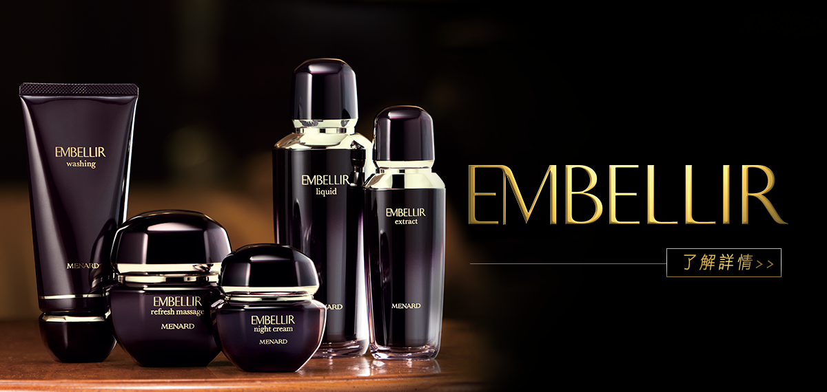 EMBELLIR- 萃自黑芝、赤芝的雙效靈芝精華SX,能徹底優化肌膚,效力深透衰退的肌膚,使肌膚散發青春光彩!並運用多重層水潤度、徹底鎖住水分、提升濃郁滋潤功效,深入永恆的美肌源力。