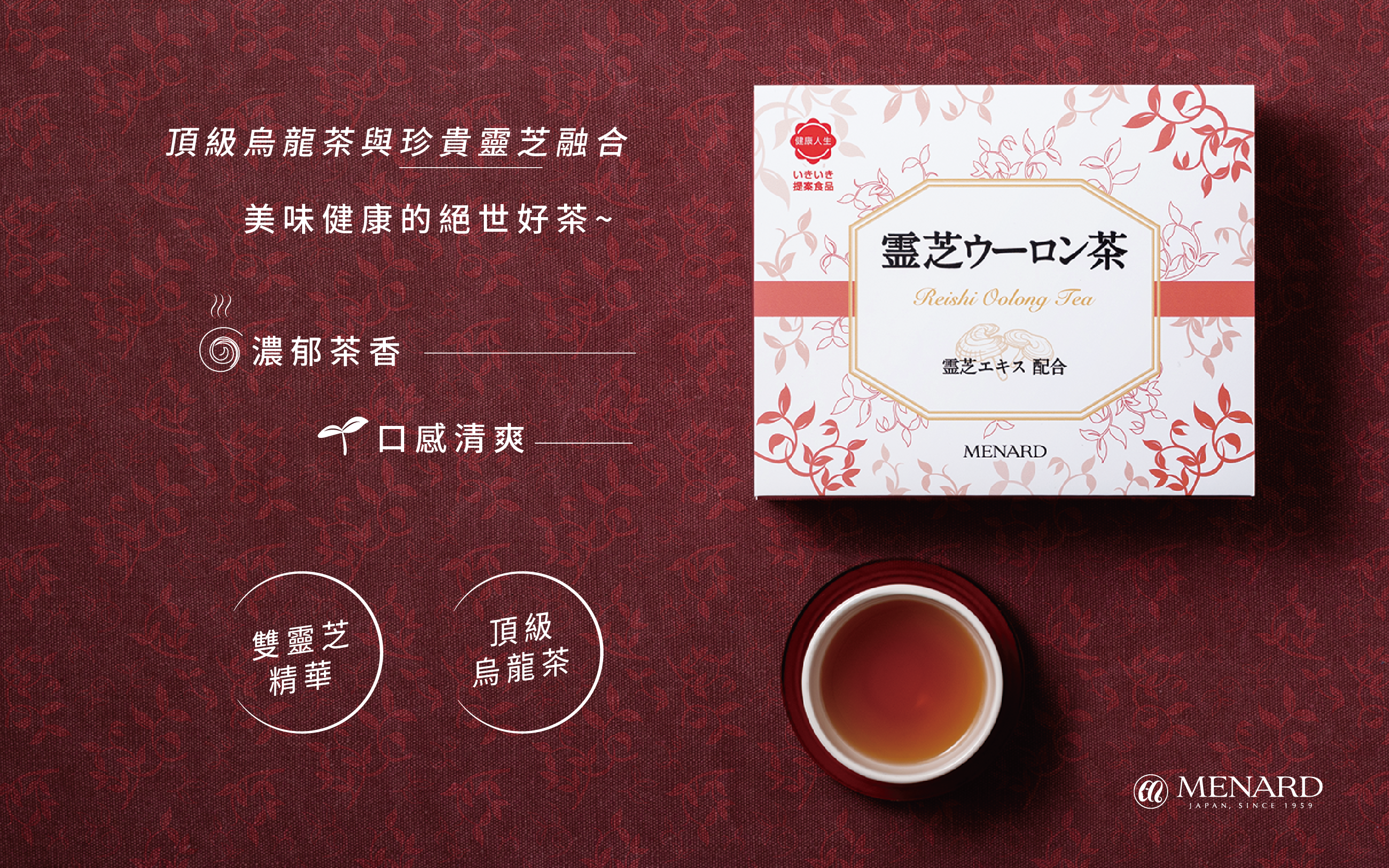 *雙靈芝精華搭配頂級烏龍茶,有益身體健康的美味茶品。