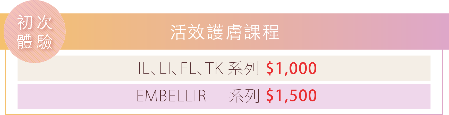 初次體驗價$1,000元